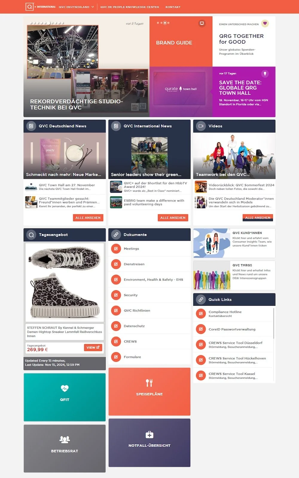 QVC Germany Intranet Homepage. Surfacing translated content specific to user located in Germany.